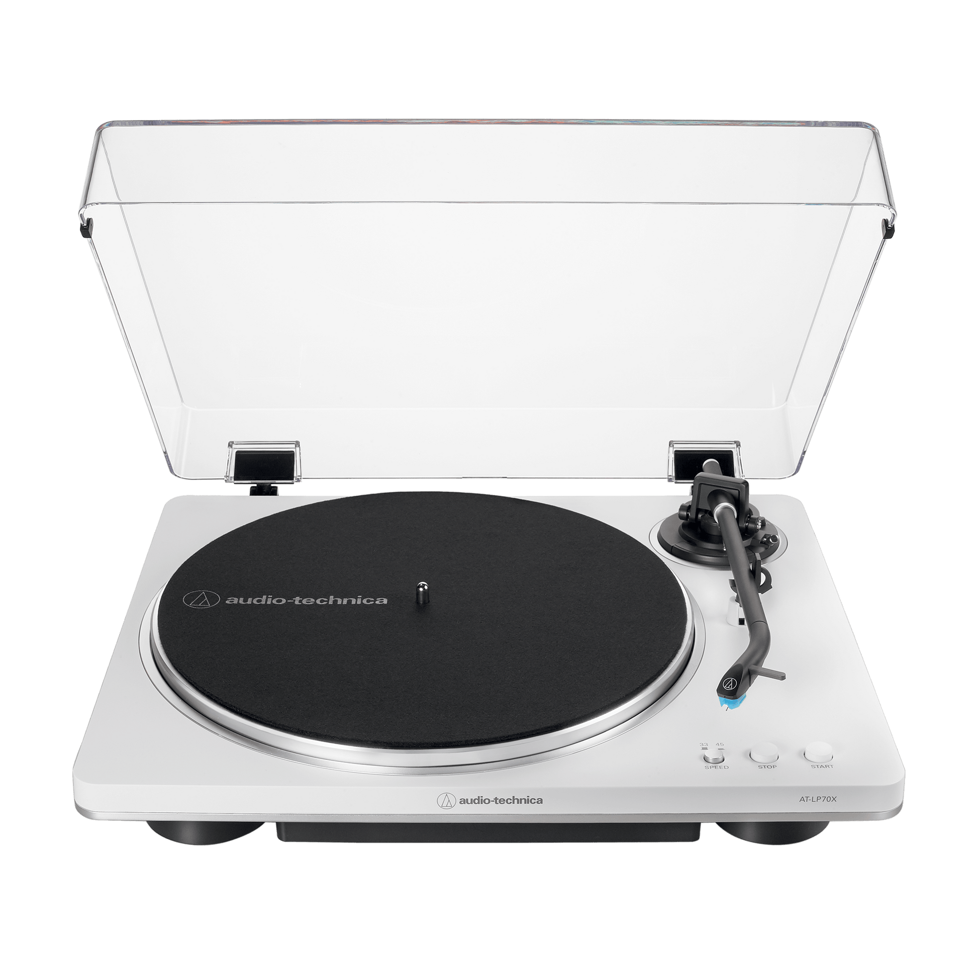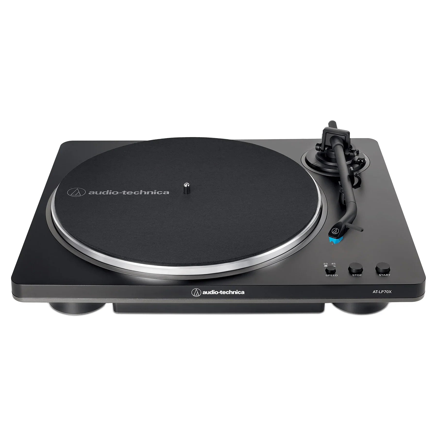 The AT-LP70X Fully Automatic Belt-Drive Turntable is the perfect beginner turntable for those beginning their audiophile journey. Designed to offer a quality sound experience for those who love listening to records, from flipping through albums at the record store to placing a record on the turntable, cueing the tonearm, and sitting back with the album art in hand to enjoy music as the artist intended. Combining the experience of warm, analog audio with user-friendly features, this turntable plays both 33-1/3 and 45 RPM records and has a built-in switchable phono preamp that allows the turntable to connect to a home stereo, powered speakers, or another component, with or without a dedicated phono input.